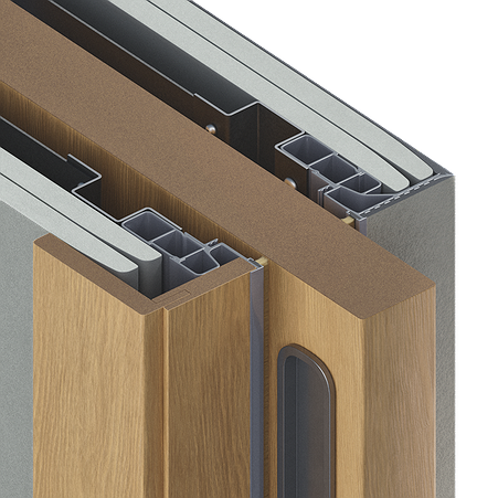 Пенал, предназначенный для установки двух полотен, сдвигающихся в центр, обрамлённых доборами и наличниками в оштукатуренный проём. Подходит для монтажа в стены толщиной до 150 мм. Может использоваться при новом строительстве или ремонте.